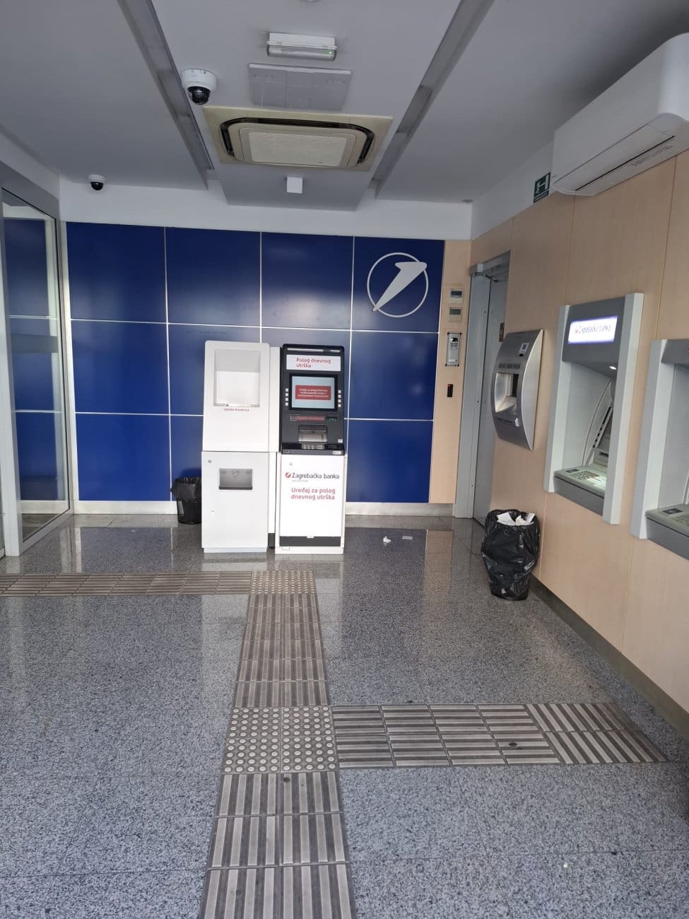 Samoposlužni uređaj za polog euro kovanica tzv. kovinomat, koji se nalazio u Zagrebačkoj banci na Poljičkoj cesti u Splitu i klijentima bio dostupan 24 sata, više nije u funkciji zbog čega je povučen iz uporabe.
