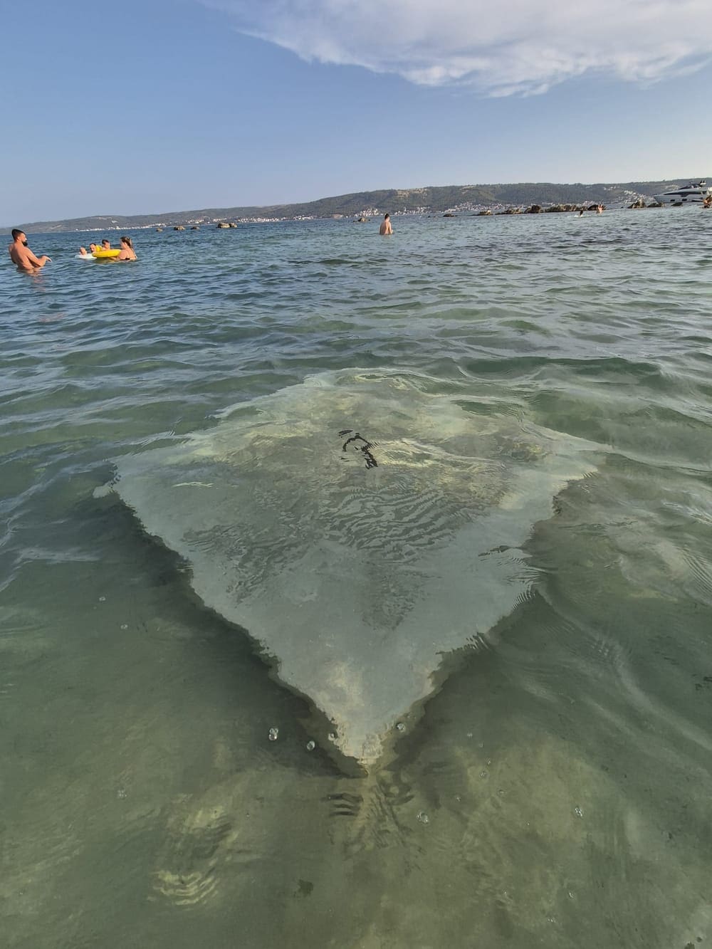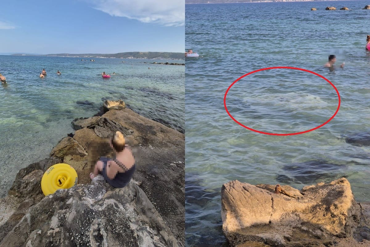 Na plažu Resnik u Kaštel Štafiliću nekom je pametnjakoviću palo na pamet da dogura teški betonski blok u sam plićak, kako bi privezao svoj brod.