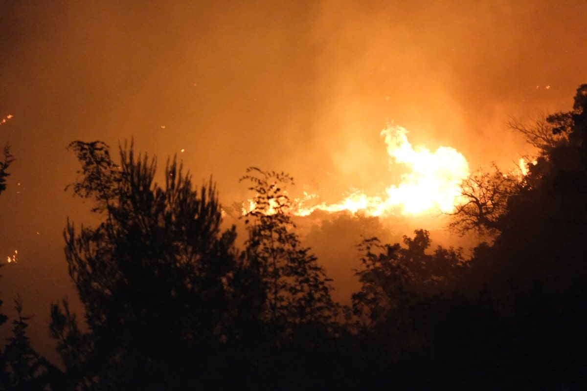 Vatra se pomahnitalo širi. Iz sekunde u sekundu plamen je sve veći. Zbog požara u Sitnom Gornjem od 21 sat zatvorena je cesta Žrnovnica- Sitno Gornje-Srinjine.