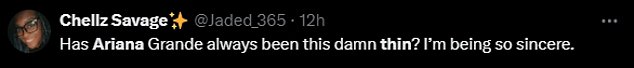 Druga je osoba objavila snimke Ariane kako pozira s glumicom Wickeda Cynthijom Erivo i sarkastično rekla da su ‘mršave’, što je potaknulo niz drugih tweetova koji analiziraju njihova tijela.