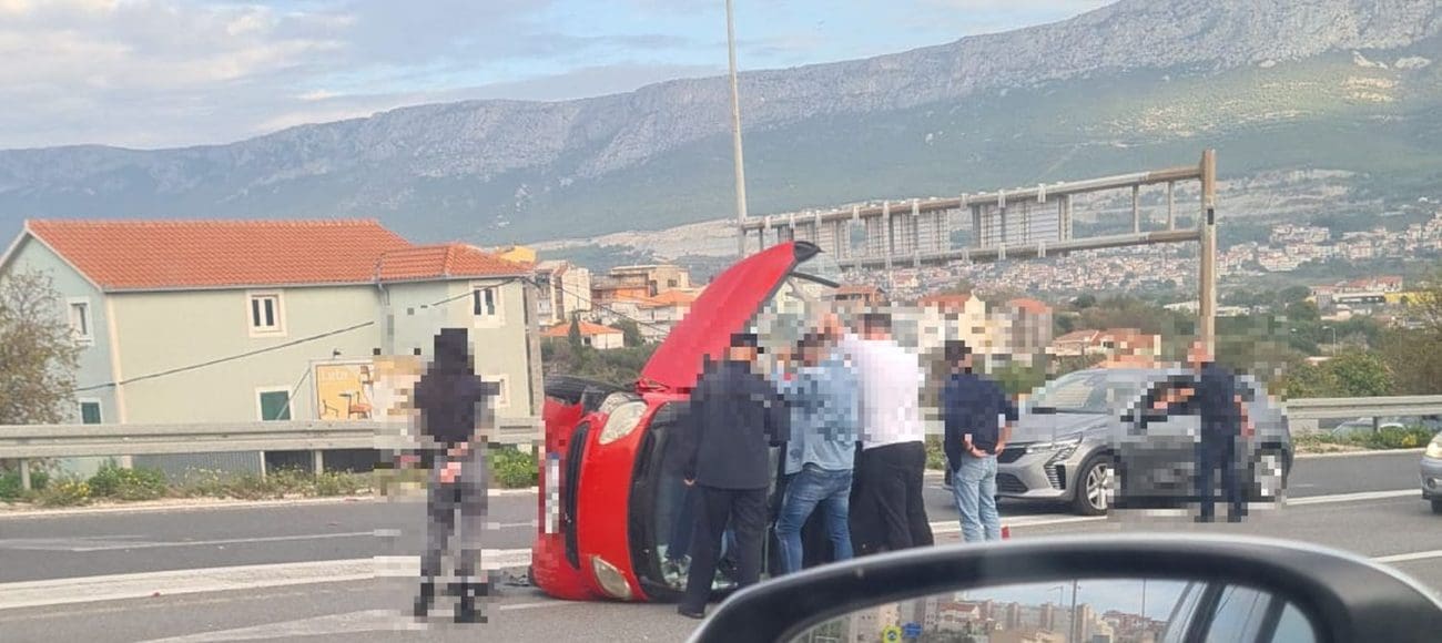 U subotu oko 8:45 sati u Ulici Zbora narodne garde u Splitu dogodila se prometna nesreća u kojoj se osobni automobil prevrnuo na krov.