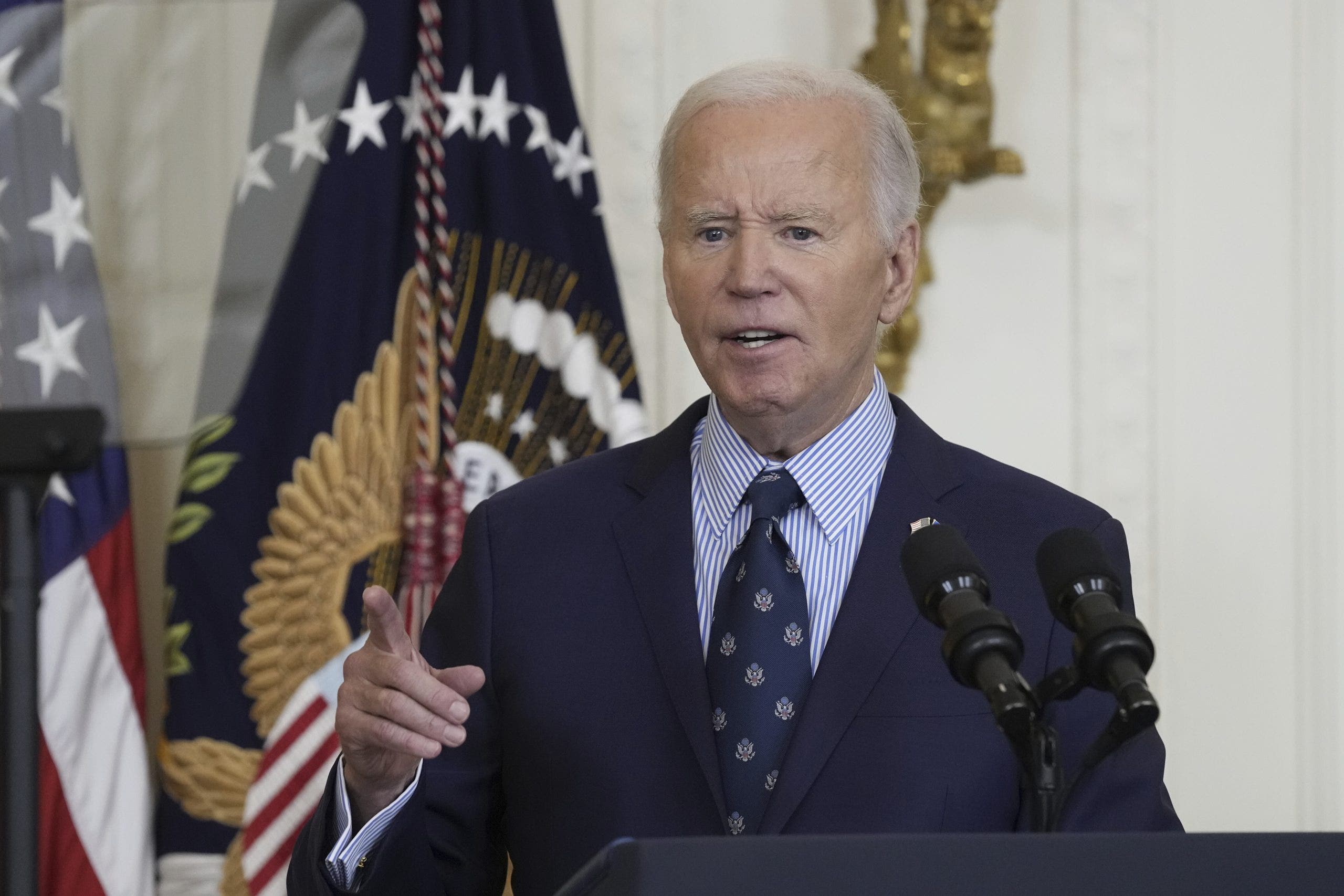 Predsjednik Joe Biden govori tijekom događaja s potpredsjednicom Kamalom Harris u istočnoj sobi Bijele kuće u Washingtonu, u četvrtak, 26. rujna 2024., o oružanom nasilju u Sjedinjenim Državama. (AP Photo/Susan Walsh)