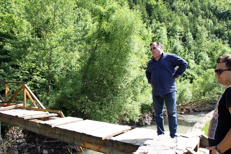 ‘Rekao sam ja, ove naše rijeke su čudne. Pogledajte do koje se razine voda bila podigla i što je nanijela. Zato sam ja rekao da se ovdje izgradi zid, od nekoliko metara. Tu smo podigli razinu vrta i nasuli zemlju,’ priča Halid Bešlić, ma da ni to nije u potpunosti spriječilo štetu. Vodena bujica tijekom poplava koje su ovog mjeseca poharale regiju, nosila je stablo koje se isčupalo iz korijena ili veću granu, koja je velikom snagom pala upravo na ‘Halidov’ most. Uslijed siline udarca i vodene bujice, most je oštećen.