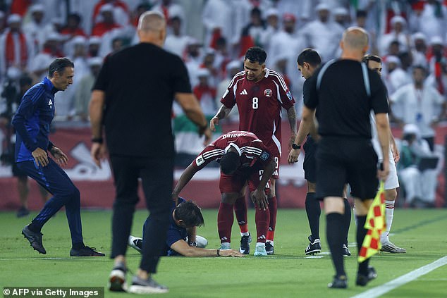 Katarski veznjak Assim Madibo otišao je provjeriti svog menadžera jer je bio taj koji je razbio loptu na njega kao rezultat potpunog krvavog izazova na dodirnoj liniji.