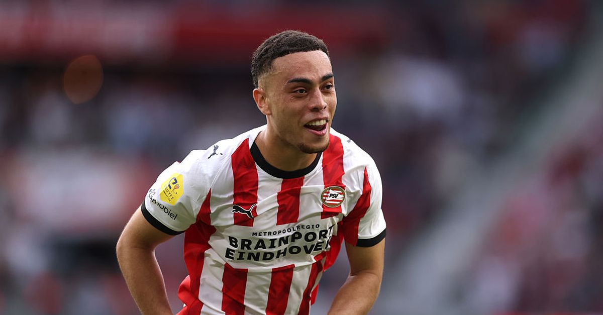 EINDHOVEN, Nizozemska – 03. kolovoza: Sergino Dest of PSV Eindhoven slavi postigavši drugi gol svog tima tijekom Johan Cruijff Schaal utakmice između PSV -a i idite naprijed Eagles u Philips Stadionu 03. kolovoza, 2025. u Eindhovenu, Nitherlands. (Foto Dean Mouhtaropoulos/Getty Images)