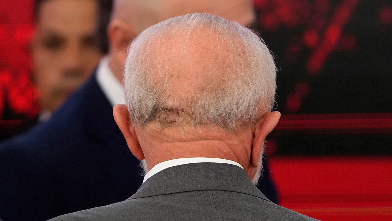 Stražnja strana glave brazilskog predsjednika Luiza Inácia Lule da Silve pokazuje šavove nastale uslijed pada, tijekom događaja u predsjedničkoj palači Planalto u Braziliji, 25. listopada 2024. Lula je nedavno bio podvrgnut operaciji intrakranijalnog krvarenja, Sirio-Libanes bolnice u Sao Paulu, stoji u priopćenju u utorak. (AP Photo/Eraldo Peres)