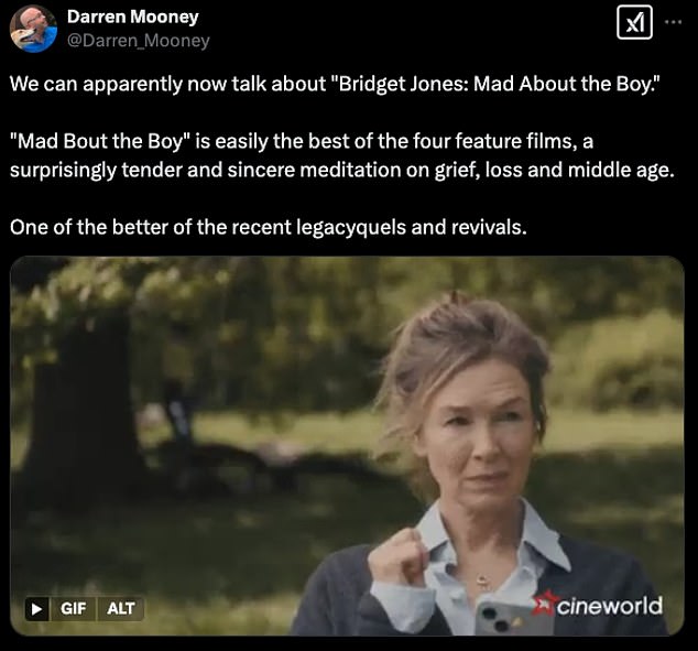 “Očito sada možemo razgovarati o” Bridget Jones: lud za dječakom. ” “Mad Bout The Boy” lako je najbolje od četiri dugometražna filma, iznenađujuće nježna i iskrena meditacija o tuzi, gubitku i srednjem dobu. Jedan od boljih nedavnih Legacyquels -a i oživljavanja ‘.