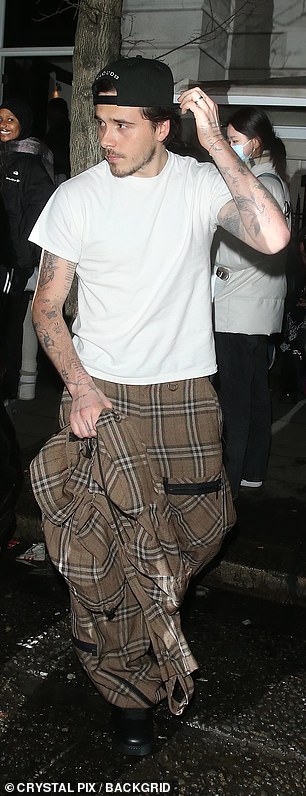 Brooklyn je uklonila svoju čečnu jaknu i po uzoru na hrskavu bijelu majicu dok je prolazio do svog vozila, dodajući unatrag crnu kapu za bejzbol svom elegantnom izgledu.