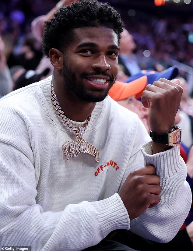 Shedeur Sanders sudjeluje u igri Hawks-Knicks u New Yorku u prosincu, kada se još uvijek mislilo da je u trčanju kao prvi izbor NFL drafta 2025