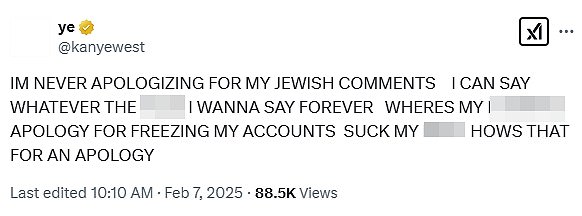 U međuvremenu, ikona prijatelja Schwimmer brenda je West ‘omalovaženim bigotom’ i rekao da njegov ‘govor mržnje’ potiče nasilje iz stvarnog života dok je pozvao Elona Muska da ukloni svoj račun iz X, rekavši da je „tišina saučesnika“. Zvjezdani X račun od tada je srušen.