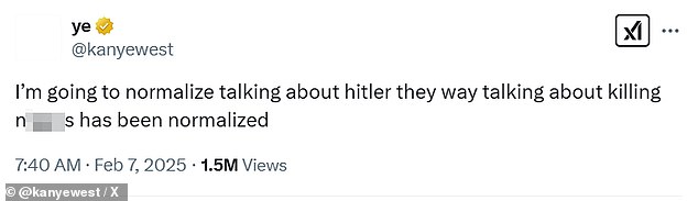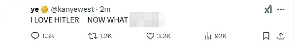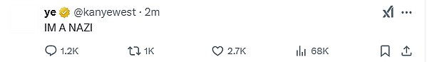 Među njegovim najsjasnijim tweetovima u posljednje vrijeme tirade, Kanye je ponosno izjavio: ‘Ja sam nacist’, kasnije dodajući: ‘Volim Hitlera sada što b ***** s’