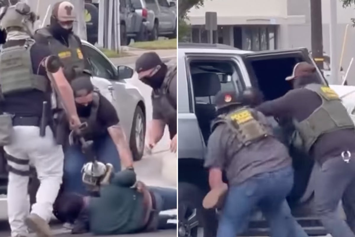 Čini se da grafički novi video snimci prikazuju trenutak kada su višestruki maskirani muškarci u američkoj graničnoj patroli pretukli oca tri američka marinaca na ulici, prije nego što je ubijen u stražnji dio neoznačenog automobila.