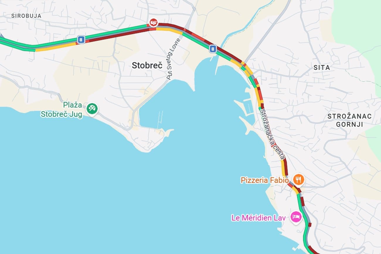 Ni nešto kasnije situacija se, prema njegovim riječima, nije bitno popravila. Nakon 38 minuta vožnje, odnosno stajanja u koloni, još uvijek nije stigao ni do predjela kod Stobreča, a procjenjuje se da se iza njega kolona proteže kilometrima. Dodatne dojave s terena govore da se zastoj protegao gotovo do Svetog Martina.