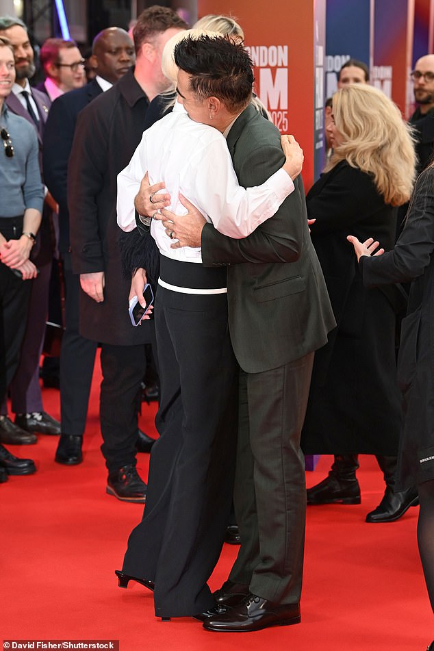 Colin Farrell i Tilda Swinton podijelili su topao zagrljaj dok su u četvrtak prisustvovali premijeru balade malog igrača u Royal Festival Hall u Londonu