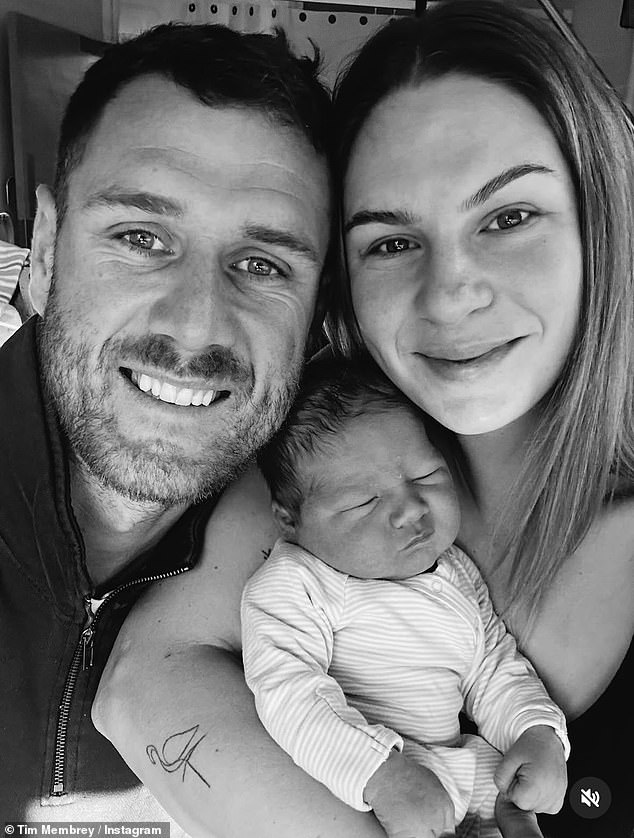 Zvijezda Collingwooda Tim Membrey i njegova partnerica Emily najavili su rođenje svog trećeg djeteta.