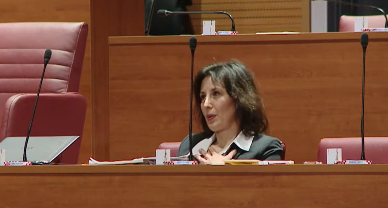 Skočila je s mjesta i počela tresti rukom. “Stresla me struja”, rekla je nakon što je ponovno sjela, a Pavić nastavio govoriti. Prekinuo ga je Ivan Penava koji je u tom trenutku predsjedao sjednicom.