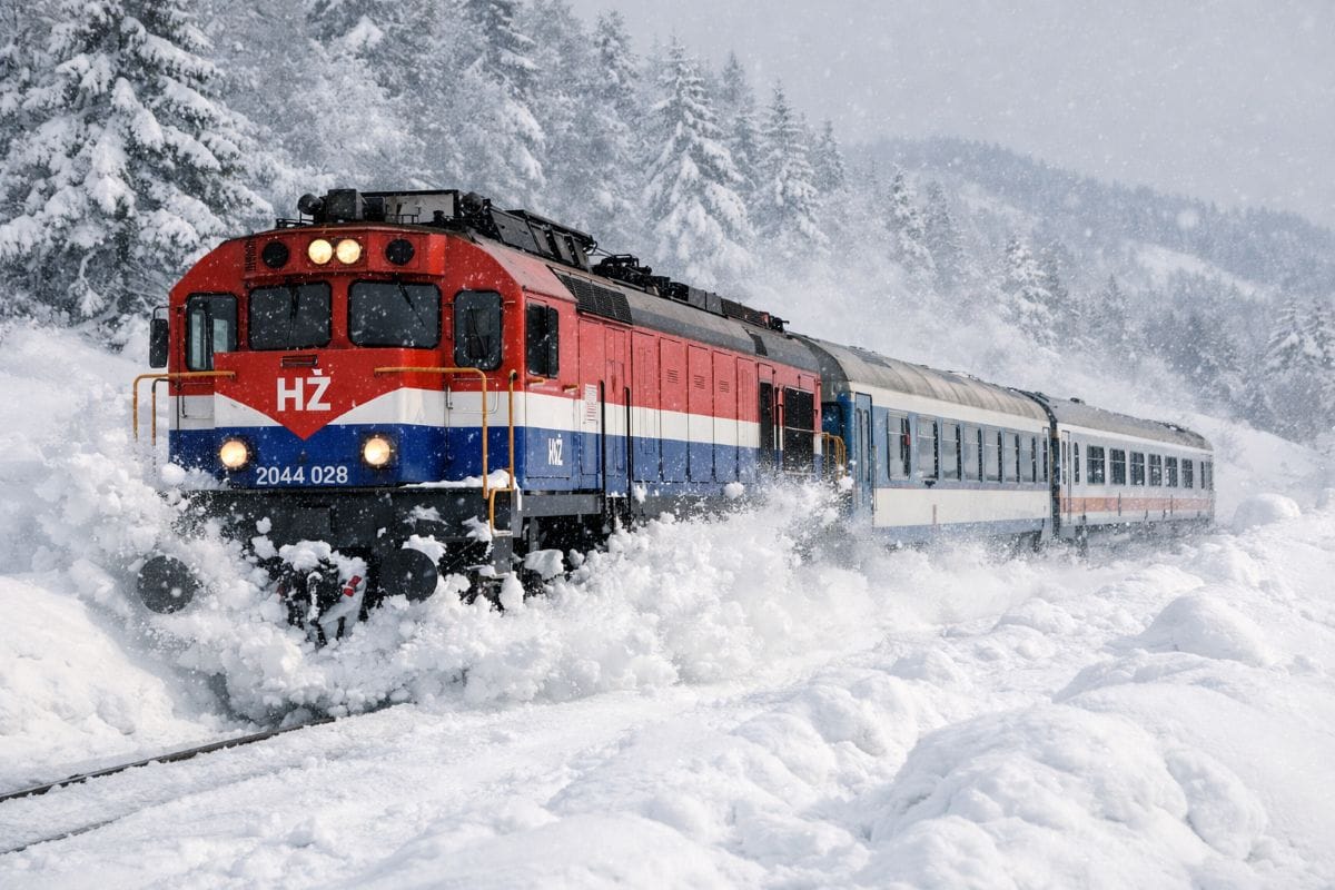 Vlak HŽ Putničkog prijevoza napustio je Zagreb jučer u 13:49, no putovanje je prekinuto na dionici pruge između kolodvora Kosovo i Knin, gdje je snijegom pritisnuta grana slomila staklo na lokomotivi. Zbog neprohodnosti pruge i nemogućnosti organiziranja zamjenskog autobusnog prijevoza usred olujnog vremena, vlak je ostao zaglavljen u Kninu više od 12 sati.