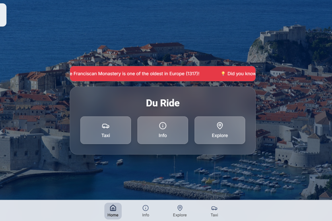 U ponedjeljak pokreće se du_ride, nova domaća taxi web-aplikacija za Grad Dubrovnik i županiju. Riječ je o rješenju kojem se pristupa preko linka ili QR koda – bez preuzimanja klasične aplikacije – što je važno i za goste i za starije građane. Iza projekta stoje online turistička agencija DU-TIPS i digitalna platforma WelcomeHub, koje već godinama razvijaju alate za turizam i lokalno poslovanje.du_ride nije samo taxi rješenje, nego web-app ekosustav: taxi prijevoz + info pult + digitalni alati za apartmane, restorane i druga poslovanja.