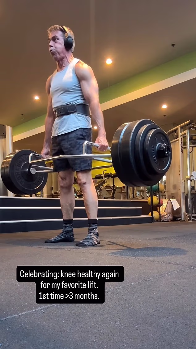 ‘Rehabilitacija (nakon) operacije koljena i obnavljanje snage. slaveći male prekretnice’, napisao je. ‘(Ja) volim mrtvo dizanje sa šesterokutnom šipkom.. mogu pomaknuti dobru težinu s hvatom koji je lakši za ramena.’