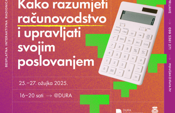 Vlasnik ste tvrtke ili obrta, a ne snalazite se u svim računovodstvenim i poreznim stavkama vašeg poslovanja? Za vas smo u okviru Startup akademije organizirali trodnevnu radionicu pod nazivom „Kako razumjeti računovodstvo i upravljati svojim poslovanjem“ koja će se održati od 25. do 27. ožujka 2025. u prostorijama DURA-e (Branitelja Dubrovnika 15, 20000 Dubrovnik) od 16.00 sati. Trajanje je radionice tri dana po 4 sata.