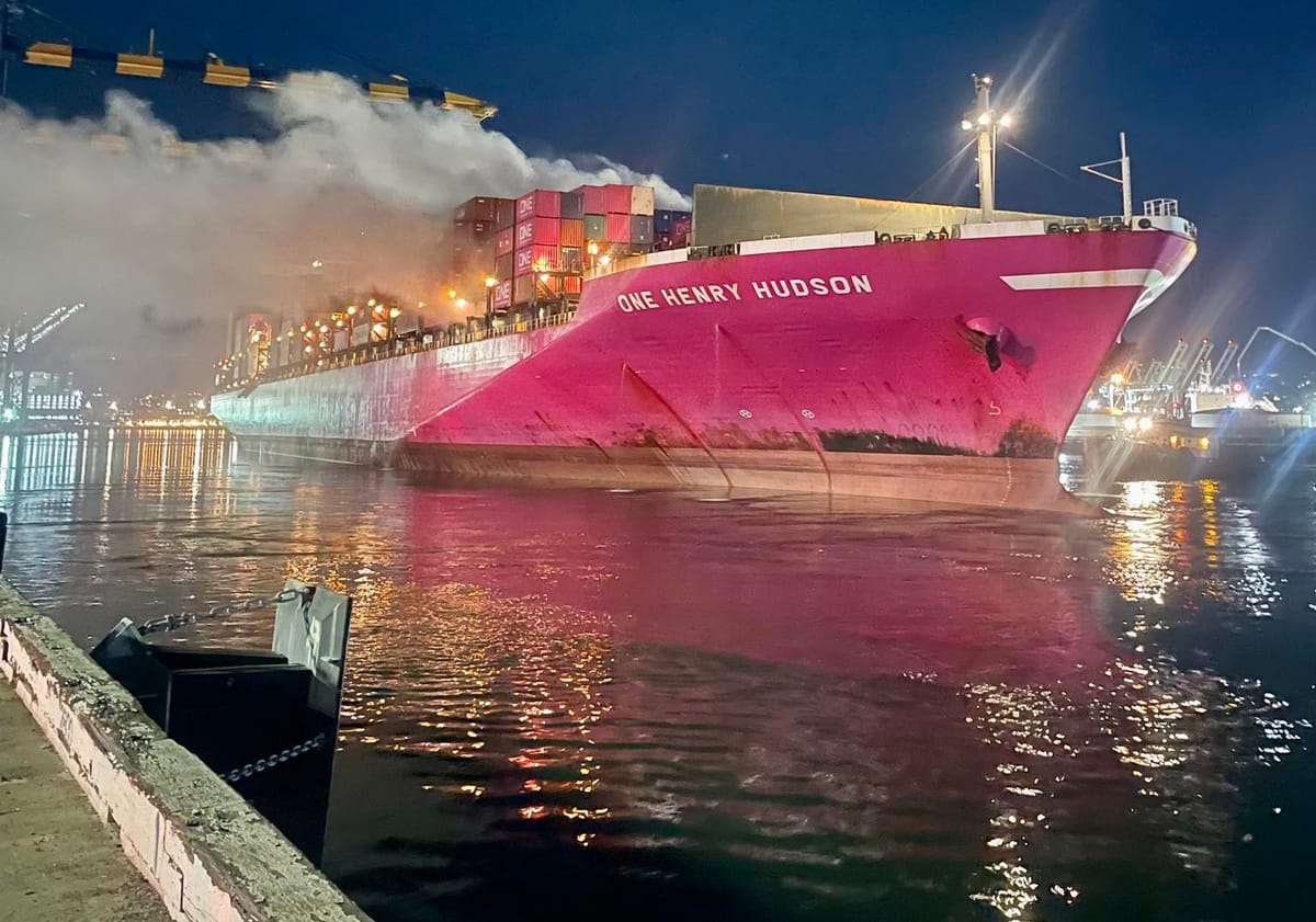 Požar koji je započeo na elektroinstalacijama, izbio je u 18:38 sati na donjoj palubi broda One Henry Hudson, kontejnerskog broda dužine 335 metara, usidrenog na Yusen Container Terminalu u San Pedru.