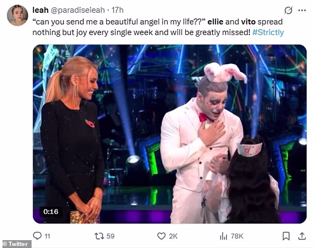 Gledatelji su ubrzo preplavili Twitter kako bi hvalili par, a Vito je rekao: ‘”možeš li mi poslati prekrasnog anđela u mom životu??” ellie i vito svaki tjedan šire samo radost i jako će im nedostajati! #Strogo’