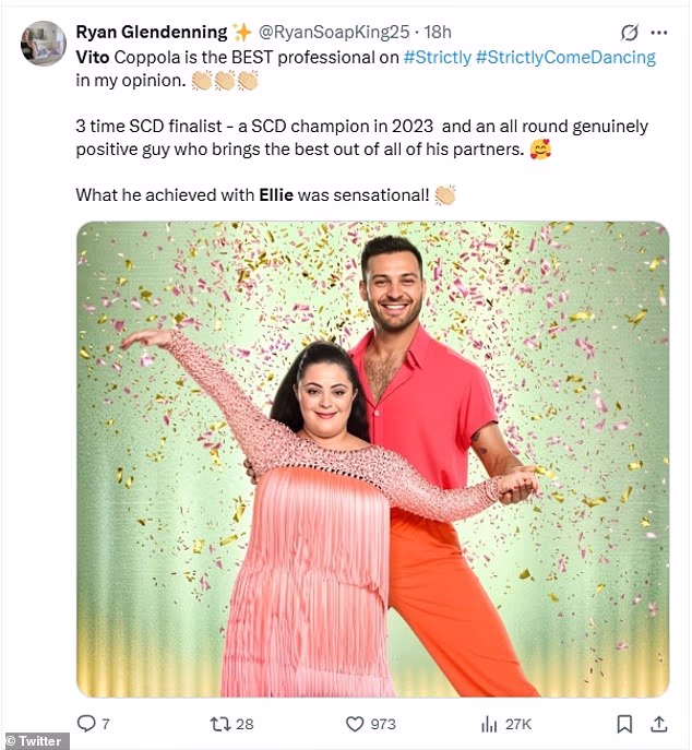 ‘Ellie možda nije osvojila #Strictly #StrictlyComeDancing, ali osvojila je mjesto u svim našim srcima. Iskreno osjećam da su Ellie & Vito jedno od najiskrenijih i najautentičnijih partnerstava na ovogodišnjem SCD-u…
