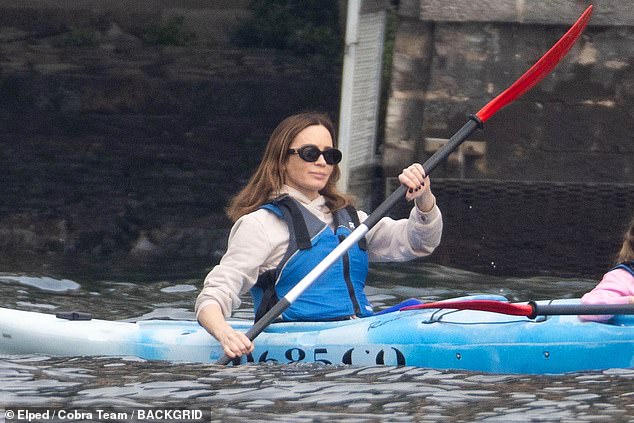 Namočivši se u krajoliku, Emily se nasmiješila dok se veslala sa svojim najmlađim, dok je filmaš John (45) podijelio kajak s Hazelom.