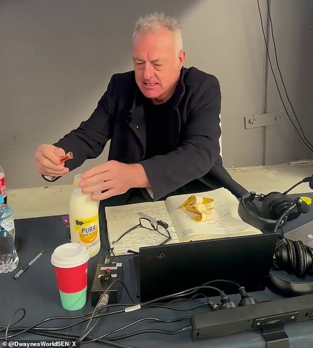Bivša zvijezda Port Adelaide i Geelong sada ugošćuje svijet Dwaynea i pokriva igre za SEN Radio, a podijelila je snimke dok je pripremao neobično mlijeko tijekom pauze za oglas tijekom svog programa u četvrtak.