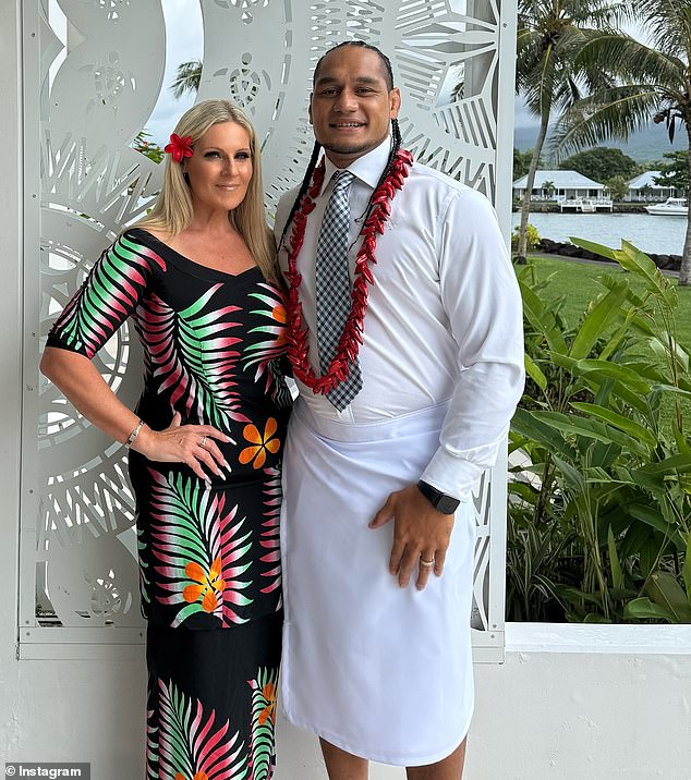 Napadač Broncosa Martin Taupau (na slici sa suprugom Michellom) izdao je javno ispriku nakon što mi se svidio post na društvenim mrežama koji kritizira trenerski stil Michaela Maguirea