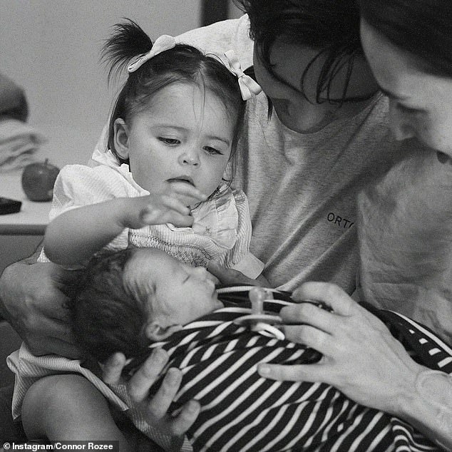Veznjak, 25, objavio je niz fotografija na Instagramu sa svojom suprugom Maisie nakon dolaska Audrey Sarah Rozee (na slici, u sredini) koja je rođena u lipnju prošle godine