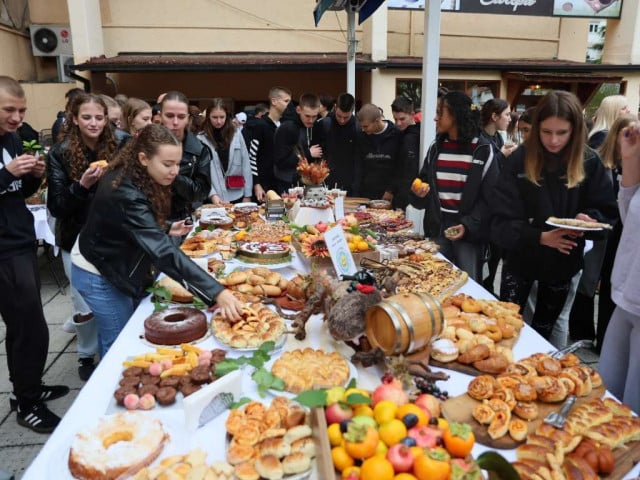 Školsko dvorište bilo je ispunjeno mirisima svježe pečenog kruha, slastica od jabuka, muffina, pita, uštipaka i drugih hercegovačkih delicija koje su pripremili učenici svih obrazovnih smjerova škole – kuhari, pomoćni kuhari, konobari, hotelijersko-turistički tehničari, tehničari nutricionisti i informatički tehničari u turizmu.