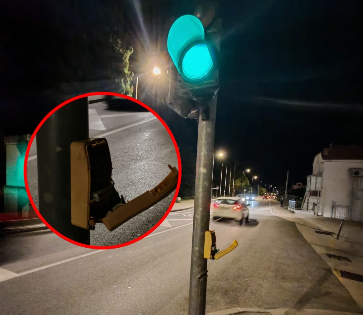 U petak navečer nepoznati počinitelj oštetio je semafor u Kaštel Gomilici. Na fotografijama se vidi da je metalna konstrukcija na kojoj se nalazi tipka za pješake savijena i djelomično odlomljena.