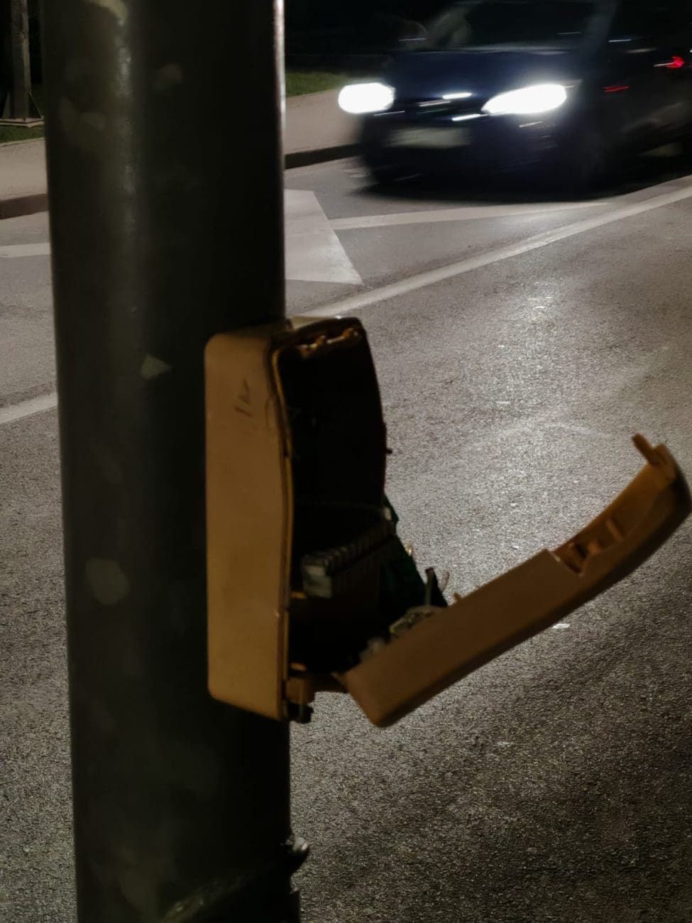 Iako semafor i dalje radi te pokazuje svjetlosne signale, oštećenje bi moglo ugroziti sigurnost pješaka, osobito onih koji se oslanjaju zvučne signale za prelazak ceste.