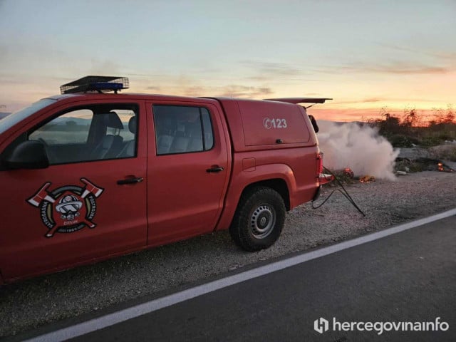 Prema prvim informacijama, gori trava i nisko raslinje uz prometnicu, a požar se širi zbog vjetra. Na teren su odmah upućene vatrogasna ekipa iz Mostara koje gase požar i sprječavaju njegovo širenje.