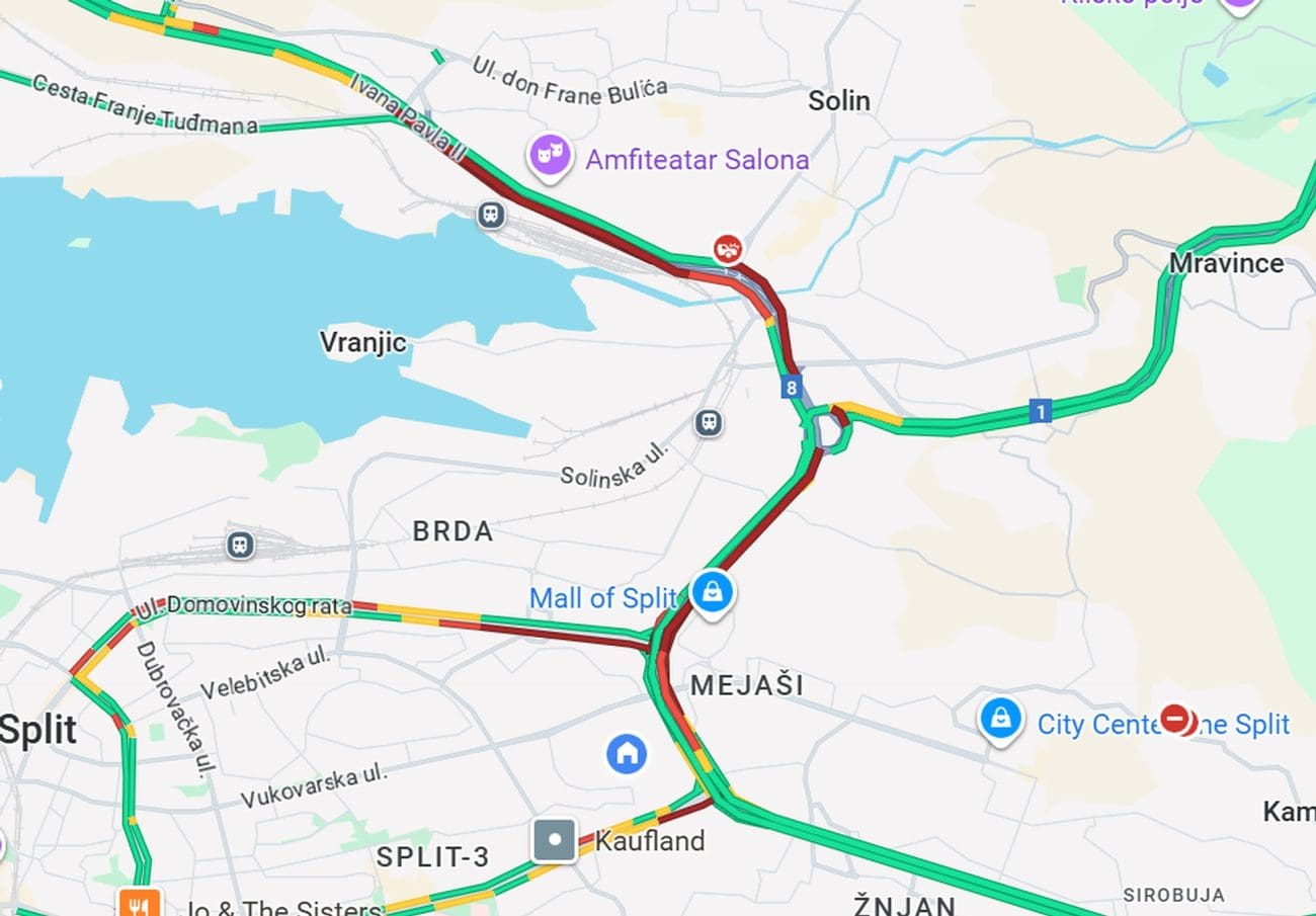 Vozačima se savjetuje strpljenje i oprez. Zbog prometne nesreće, ali i zbog velikog priljeva vozila, stvorila se velika gužva iz smjera Splita prema Solinu i Kaštelima. Gužva je prisutna i prema Dugopolju, ali je puno veća u smjeru Kaštela.