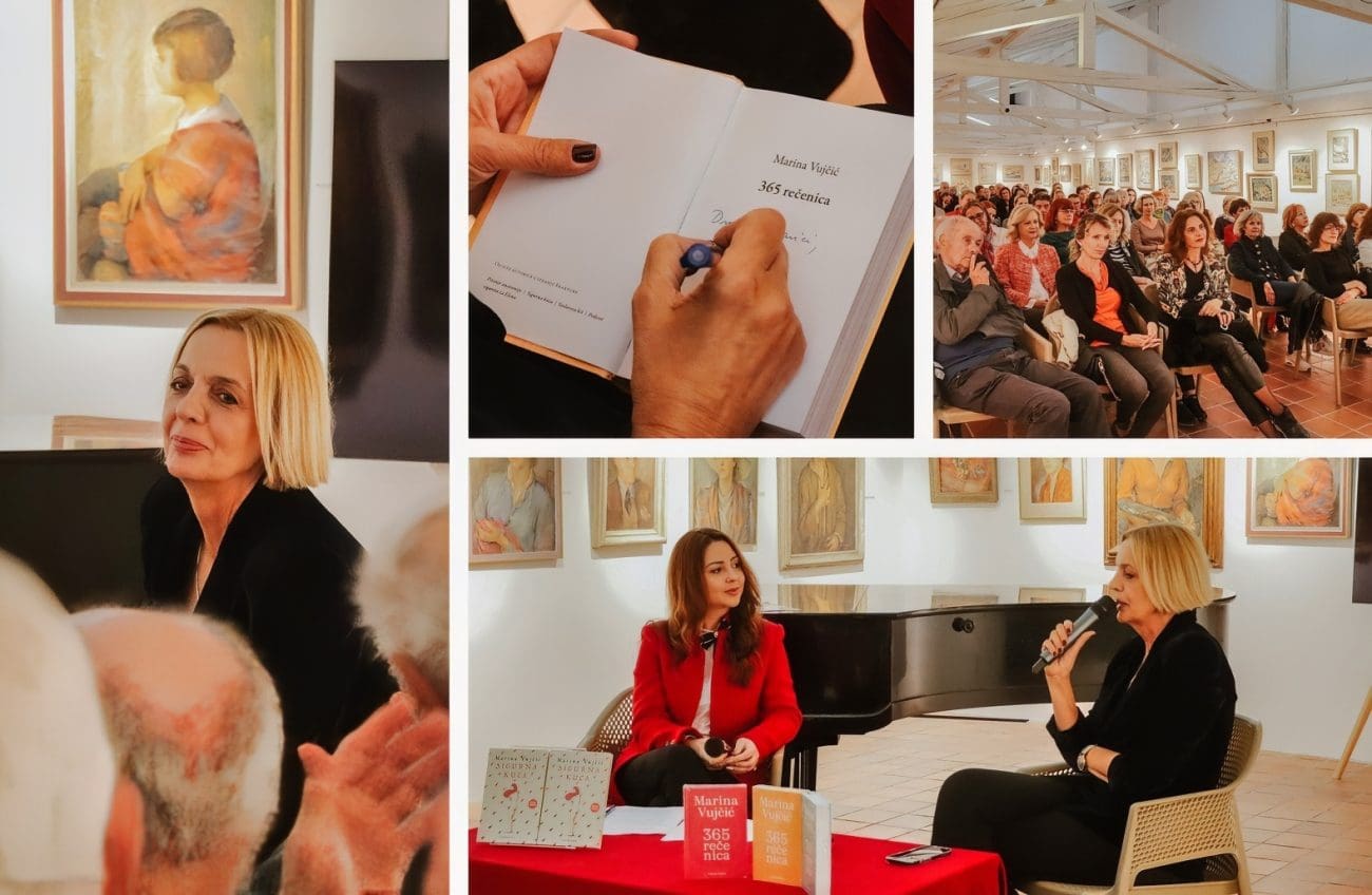 Publika je imala priliku čuti više o autorici, njezinu stvaralaštvu, prijevodima njenih knjiga na strane jezike, životu pisaca u Hrvatskoj, kao i o motivima, inspiraciji i procesu pisanja. U fokusu razgovora bile su dvije nove knjige Marine Vujčić – 365 rečenica koja u kratkim, misaonim svakodnevnim zapisima oblikuje svojevrsni književni kalendar života i dokazuje da “jedna rečenica dnevno može spasiti dan, pa i glavu” te roman Sigurna kuća, snažan psihološki roman o ženi koja je ubila “savršenog” muža, potresna priča o skrivenom, tihom nasilju koje žene trpe iza zatvorenih vrata.