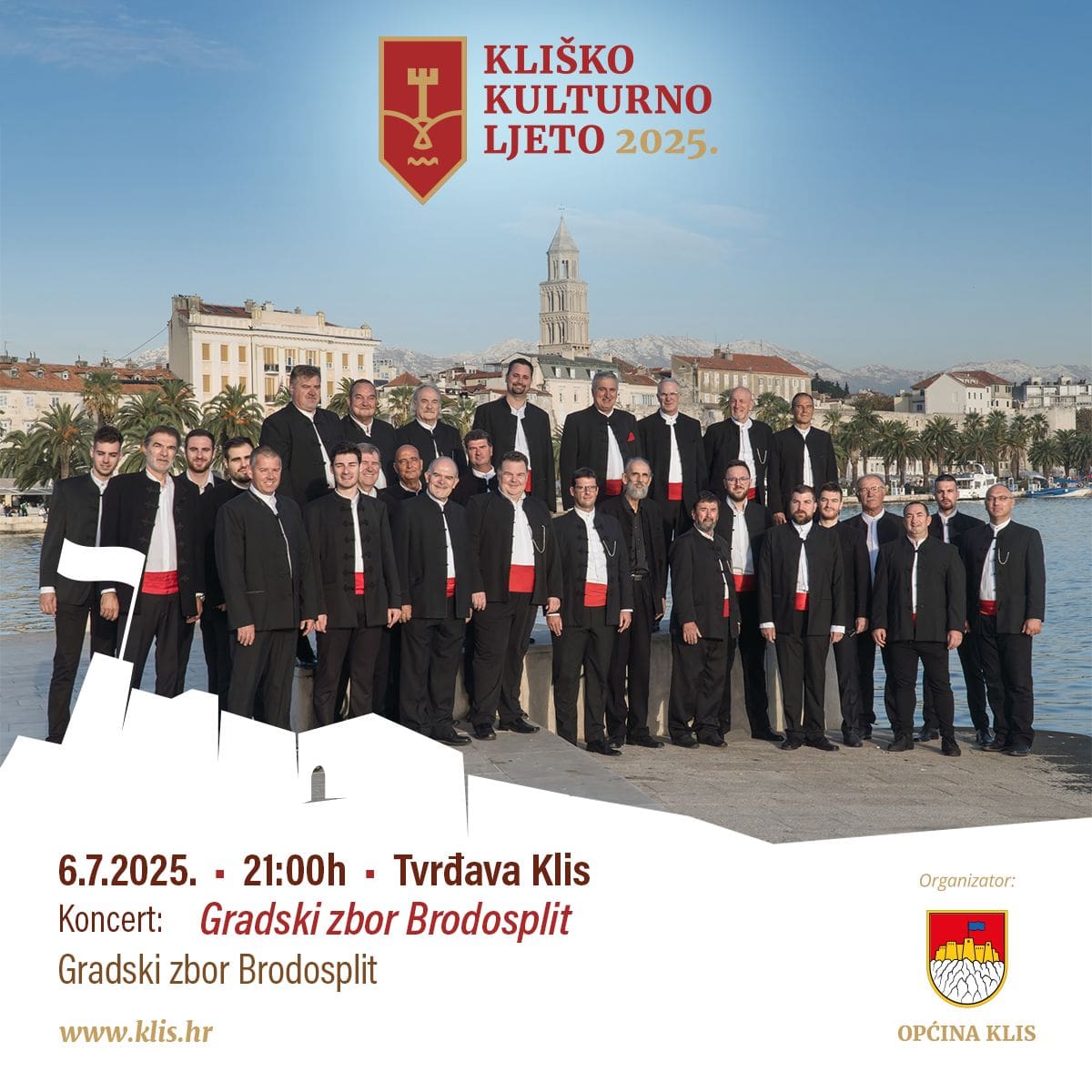 U skloplu Kliškog kulturnog ljeta ove nedjelje stiže Gradski zbor Brodosplit, inače, najtrofejniji hrvatski amaterski zbor i dvostruki apsolutni svjetski zborski prvaci. Gradski zbor Brodosplit nastupa pod palicom vrhunskog dirigenta i hrvatskog skladatelja maeastra Vlade Sunka.