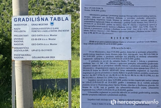 U posjedu smo rješenja Ministarstva prostornog uređenja HNŽ broj UP-2-02-19-58/24 od 24. lipnja 2024., kojim se ukida urbanistička suglasnost na temelju koje Grad Mostar sada izvodi radove (rješenje Grada: UPI-07/2-19-3110/23).