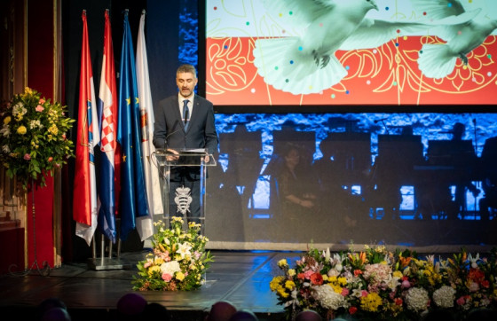 Na današnji dan, kada se pred Festu i Dan Grada, tradicionalno okupljamo, obuzima nas poseban osjećaj ponosa jer stojimo na mjestu gdje se stoljećima u skladu susreću kamen i more, tradicija i budućnost, vjera i sloboda.