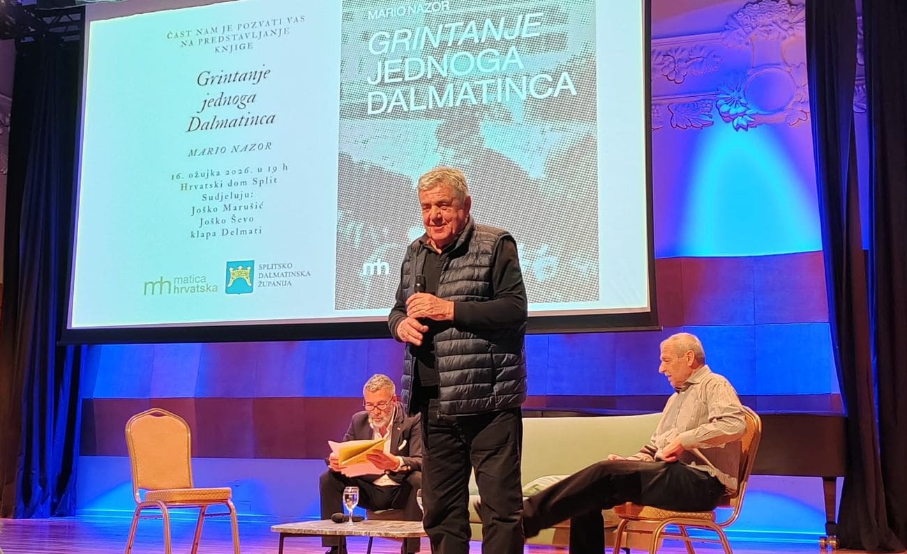 U ponedljeljak je Koncertna dvorana Ive Tijardovića u Hrvatskom domu bila pretijesna na promociji knjige Marija Nazora. Ruku su mu dali u promociji školski drug i moderator Joško Marušić, ulomke je kazivao Joško Ševo, a dvije numere je otpjevala skladna klapa Delmati.