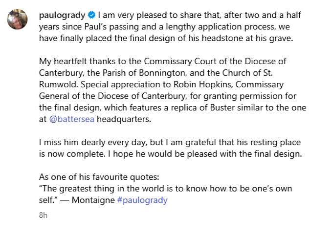 Grave Paul O’Grady napokon ima nadgrobni spomenik dvije i pol godine nakon njegove smrti.