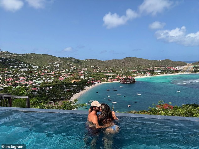 Staklo šampanjca u ruci, Heidi je podijelila poljubac i privukao se sa suprugom dok su se na suncu zabijali u beskonačnom bazenu.