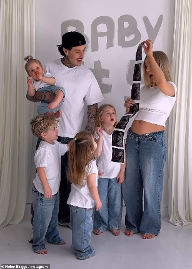 U snimci je sva obitelj bila odjevena u iste bijele majice i traperice prije nego što je Helen, 30, djeci prvi put otkrila svoju kvrgu i sonogram.