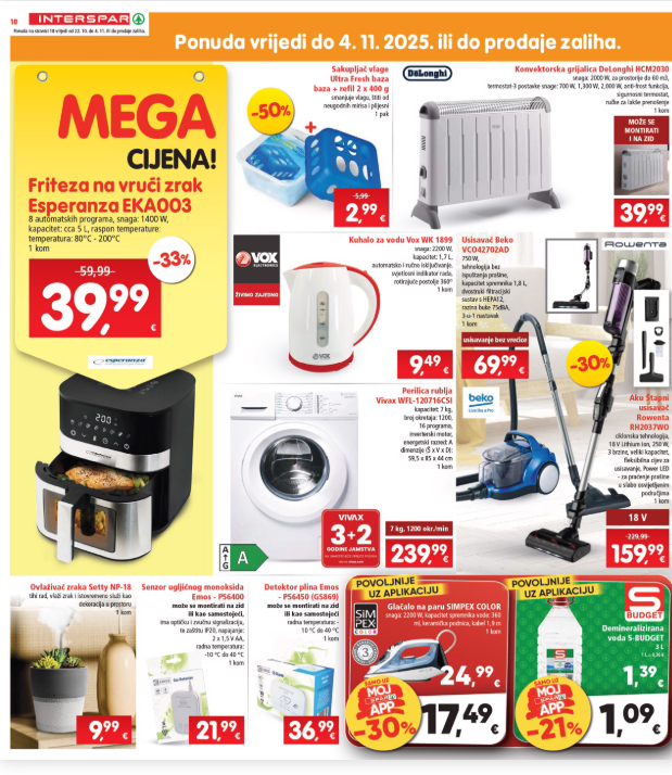 Po akcijskim cijenema može se nači i hrana za mačke i pse, a sniženja se kreću od 20 do 36 posto. Od malih kućanskih aparata na akciji je i friteza na vrući zrak koja je snižena s 59,99 na 39,99 eura.