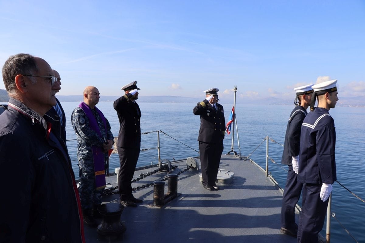 Posada broda Hrvatske ratne mornarice raketna topovnjača RTOP-21 “Šibenik” u Kaštelanskom zaljevu položila vijenac u more u spomen na hrvatske mornare.