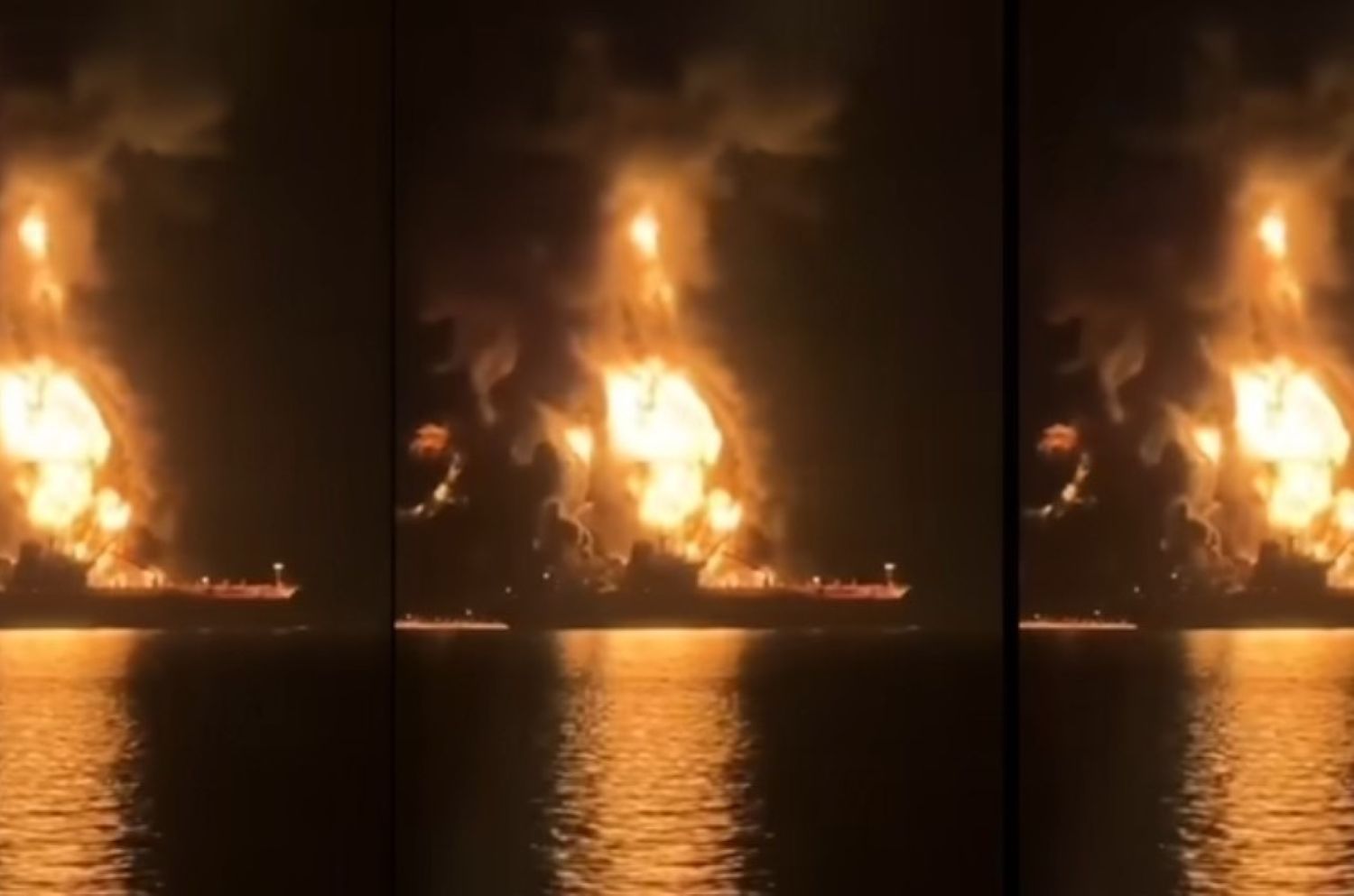 First video of the vessel that’s on fire off Oman’s coast near the Hormuz Strait pic.twitter.com/cGoMjfJo7j