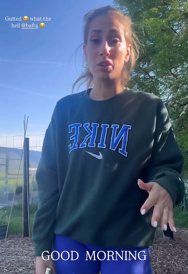 Stojeći u njenom stražnjem vrtu, Stacey Salomon je zaletjela na svojih šest milijuna sljedbenika na Instagramu: ‘Nismo osvojili BAFTA. I znam da bih to trebao shvatiti graciozno kao šampion, ali bit ću iskren, opustošen sam. Ne ponašam se baš dobro ‘