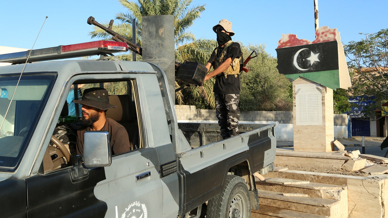 Libijske snage sigurnosti čuvaju stražu u Tripoliju, Libija, 16. kolovoza 2023. (AP Photo/Yousef Murad)
