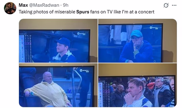 Snimatelji TNT Sporta opetovano su odabrali navijače Spursa koji su izgledali neutješno na tribinama, na veliko zadovoljstvo suparničkih navijača koji su se uključili iz morbidne fascinacije.